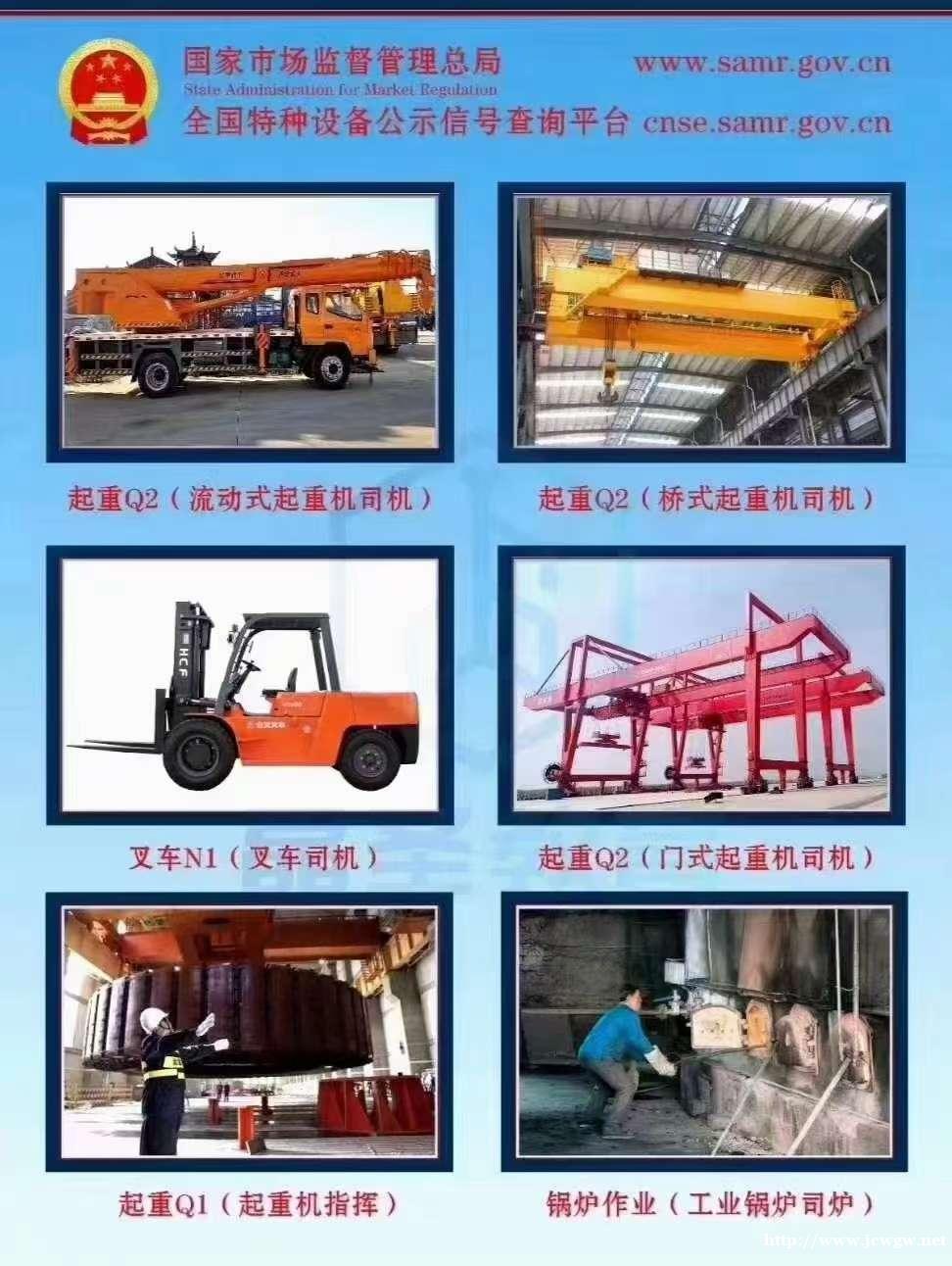 特种设备安全管理,锅炉司炉、起重机司机、叉车司机、客运索道司机、客运索道维修、大型游乐设施维修、大型游乐设施操作、电梯维修安装、起重机指挥、观光车司机、移动压力容器充装、锅炉水处理等等其它均可